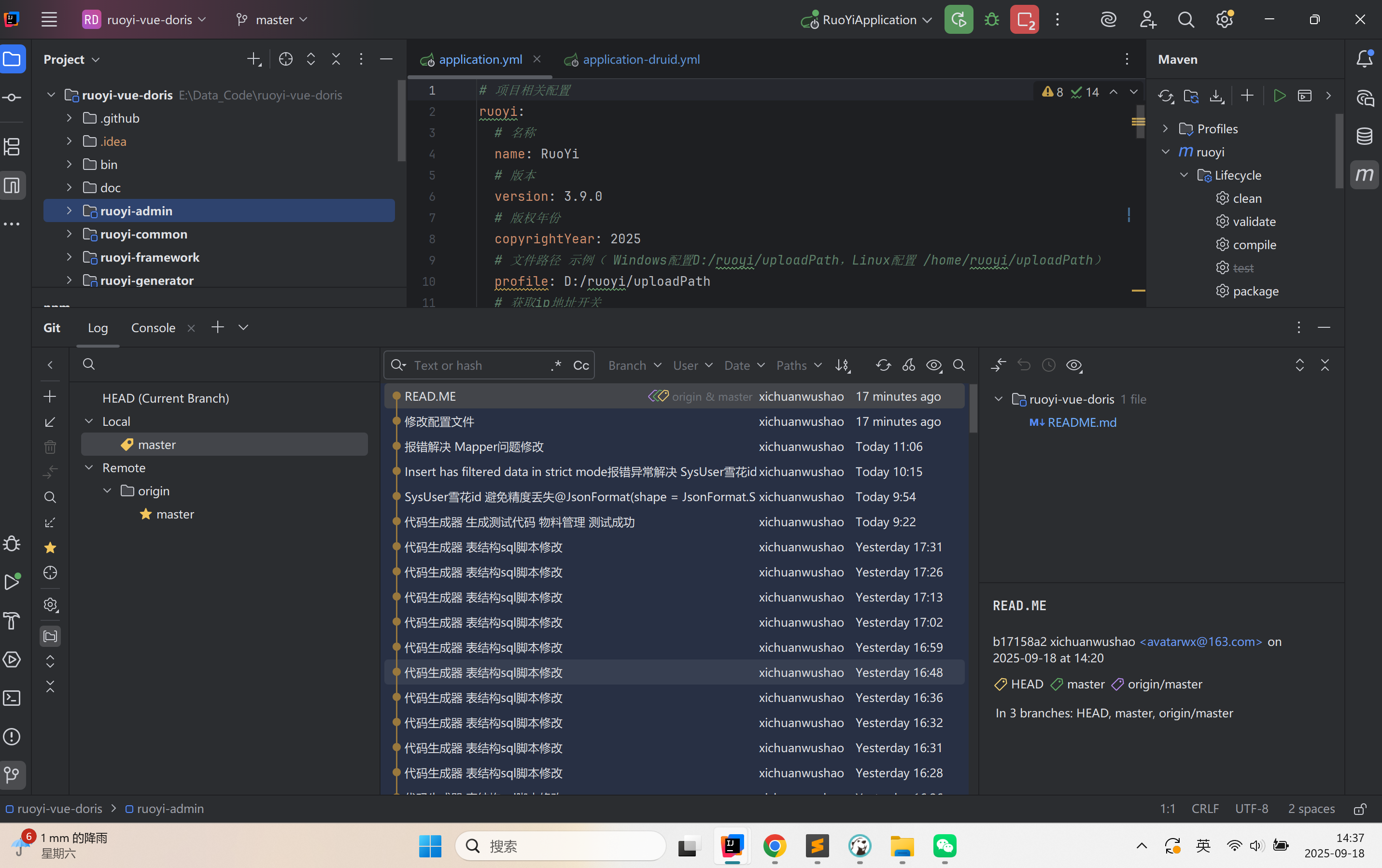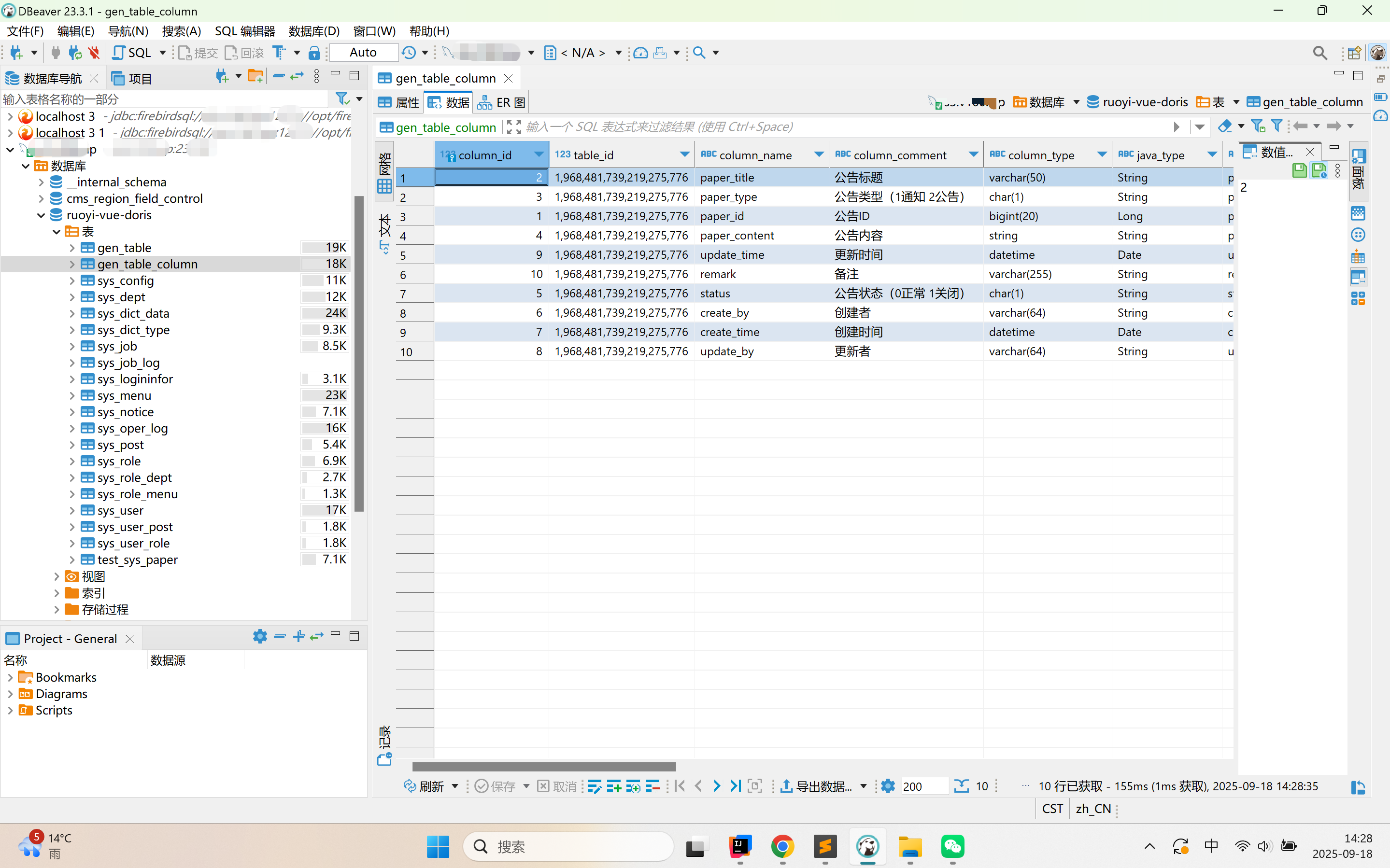 - 将ruoyi-vue底层数据库改为Doris。Doris 是一个 开源的分布式分析型数据库系统, 最适合实时数据分析、交互式报表、多维 OLAP、大规模宽表、BI 查询加速,尤其适合 “海量数据秒级查询 + 高并发访问” 的业务场景。