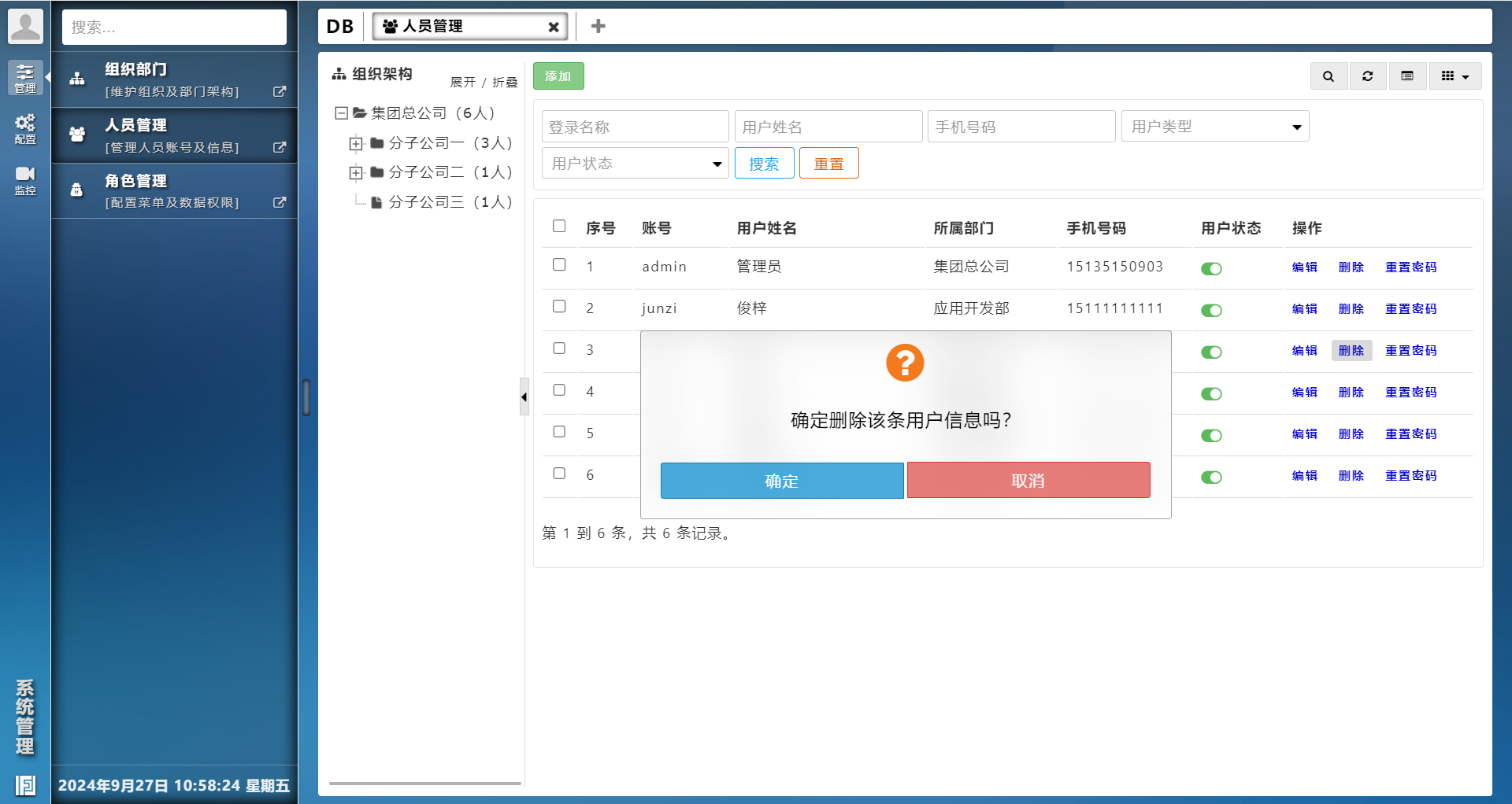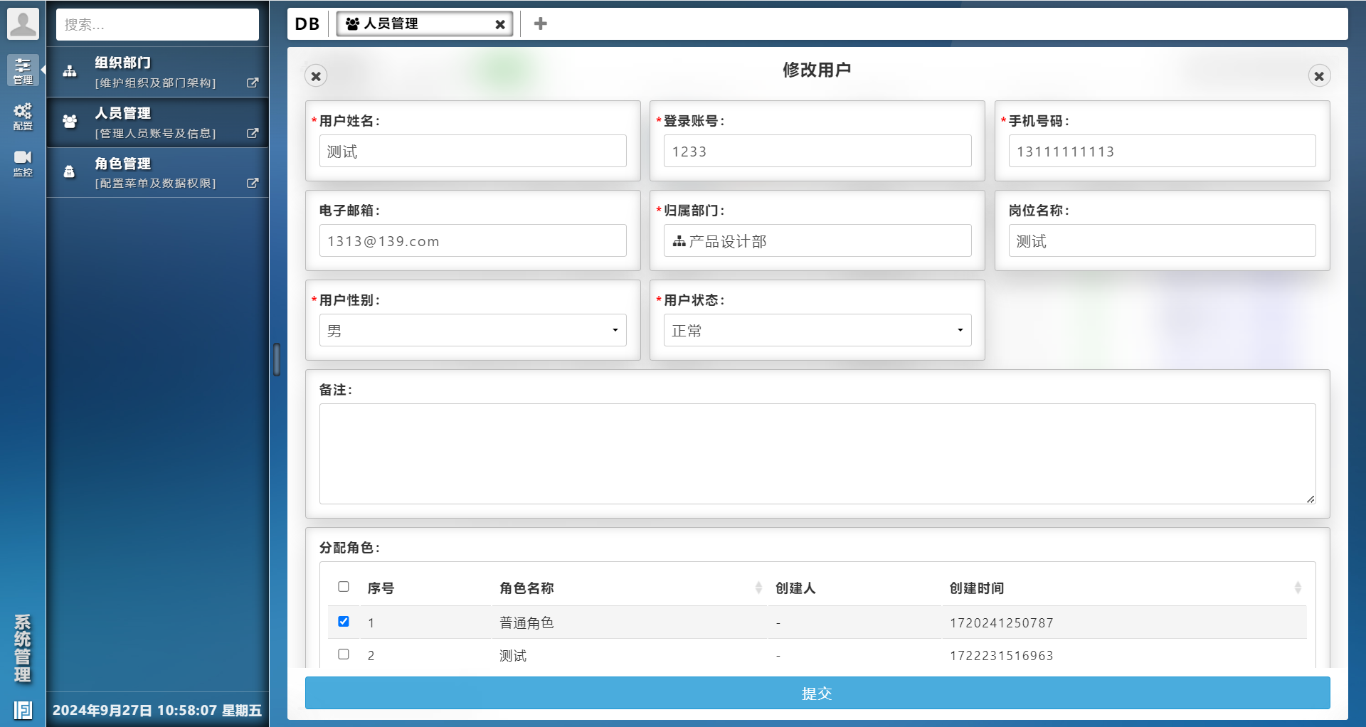 - 用户管理:用户是系统操作者,该功能主要完成系统用户配置。