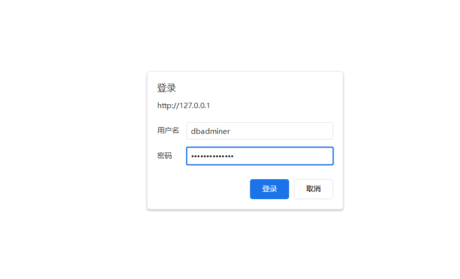 - 登录授权:dbadminer/dbadminer@当前小时数 [提示:需要将“当前小时”替换为具体数值]
