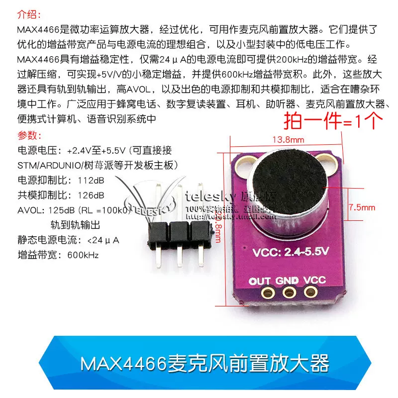 3. [声音传感器模块 声控传感器开关 声音检测 口哨开关 放大器麦克风](https://detail.tmall.com/item.htm?_u=62n19rn67fcb&id=41254382566&spm=a1z09.2.0.0.57192e8dpbPX1U)