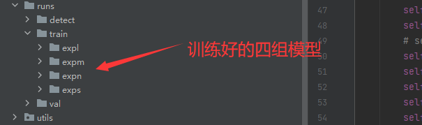 执行go_train.py文件中,包含三条指令,分别表示yolov5中small模型、medium模型和large模型,比如我这里要训练s模型,我就将其他两个模型训练的指令注释掉就好了。