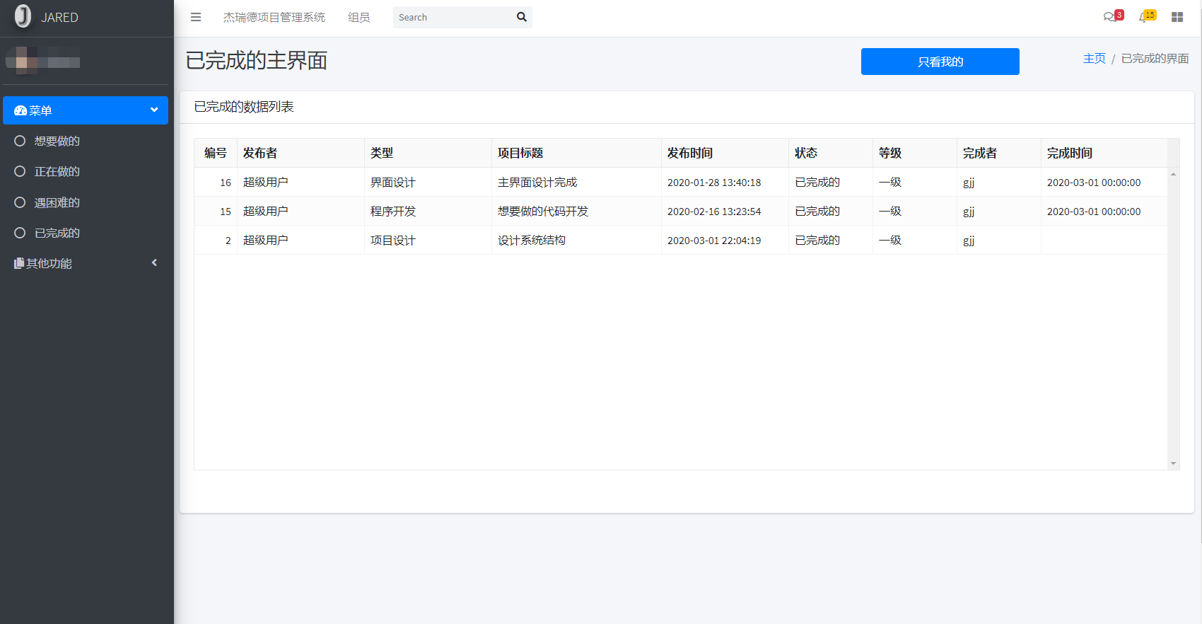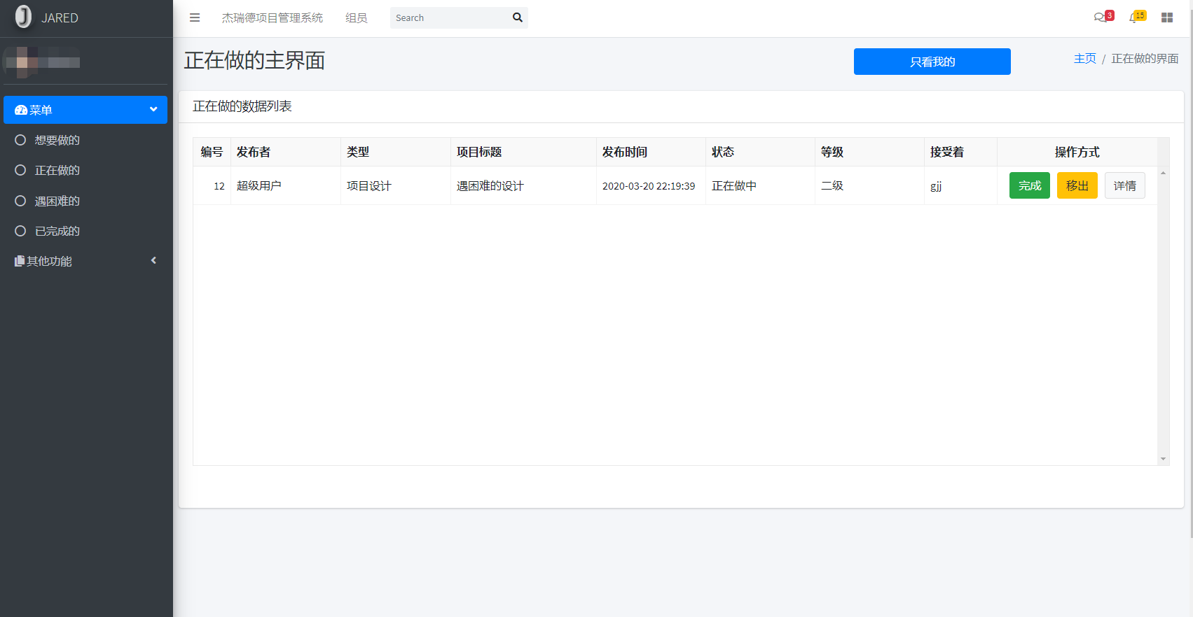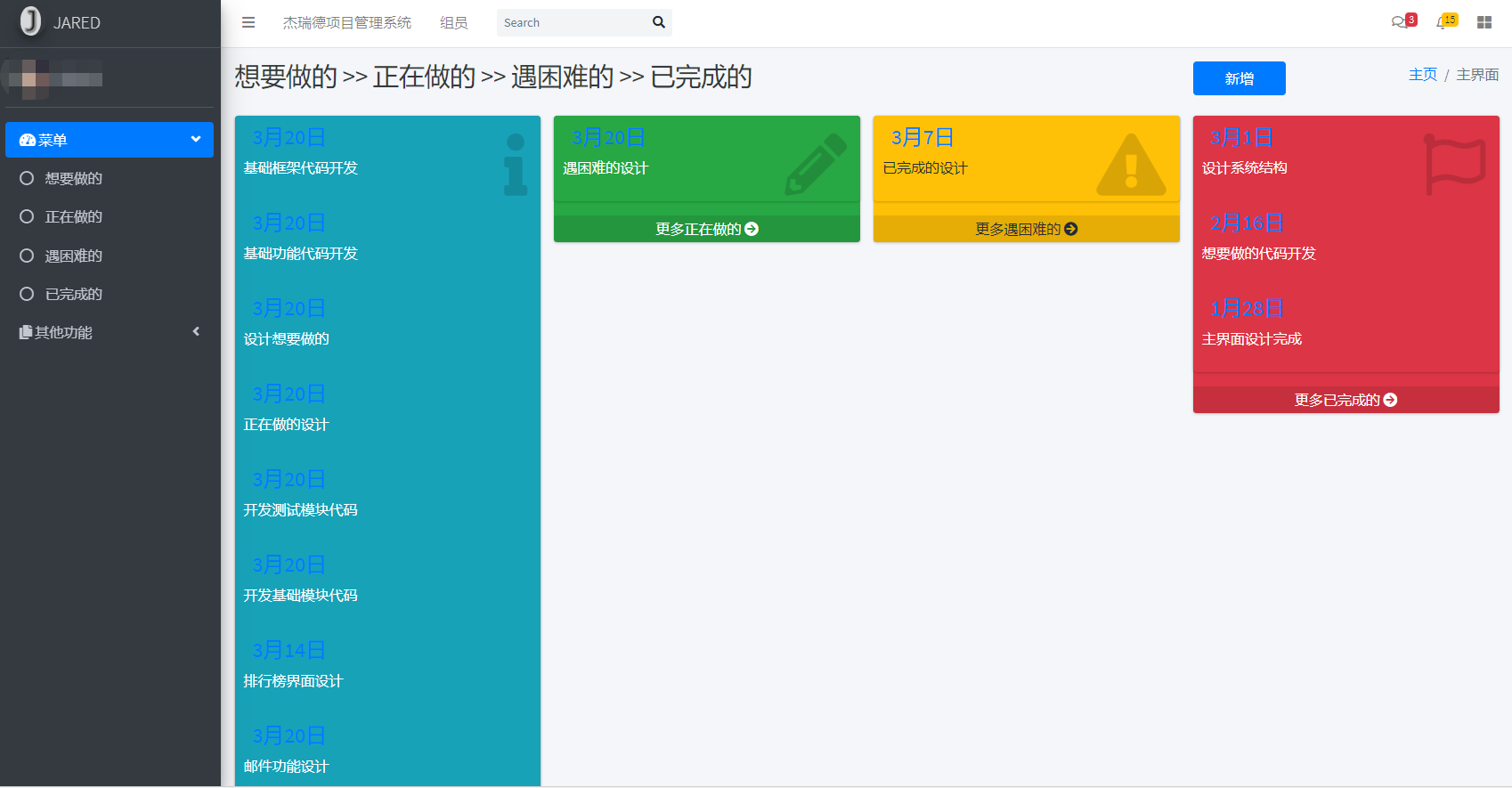 看过硅谷吗,里面有个高高的白白的挺搞笑的叫贾瑞德,他提出软件开发四步,想要做的,正在做的,遇困难的,和已完成的。我这个软件就是基于这四步。