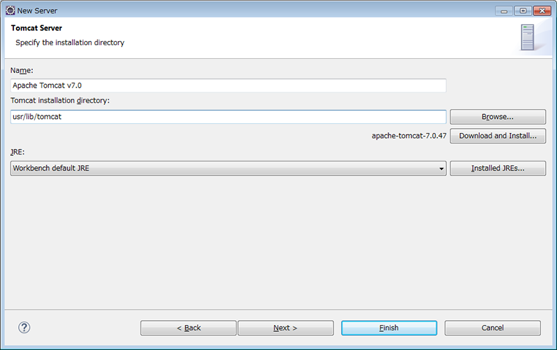 ### Error Handling Case1. If “Unknown version of tomcat was specified” is shown on this window,