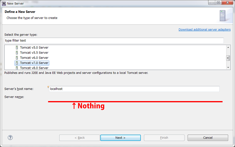 ### Error Handling Case2. If you erase tomcat from “Servers”, nothing is displayed here,and you may not be able to select Tomcat.