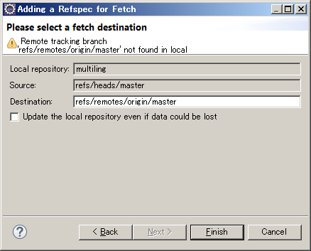 - Apply "refs/remotes/origin/master" in the Destination(Maybe set automatically)