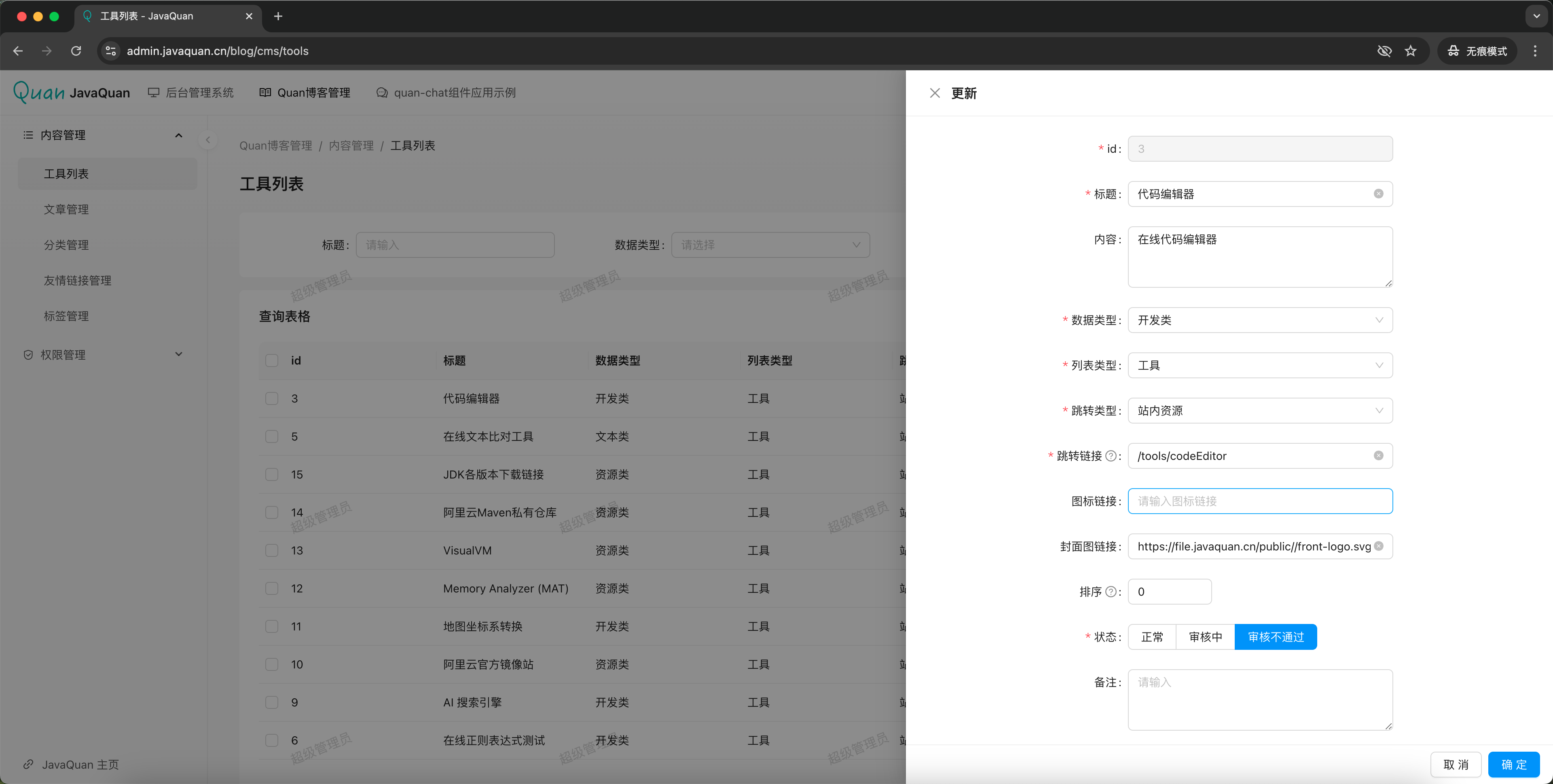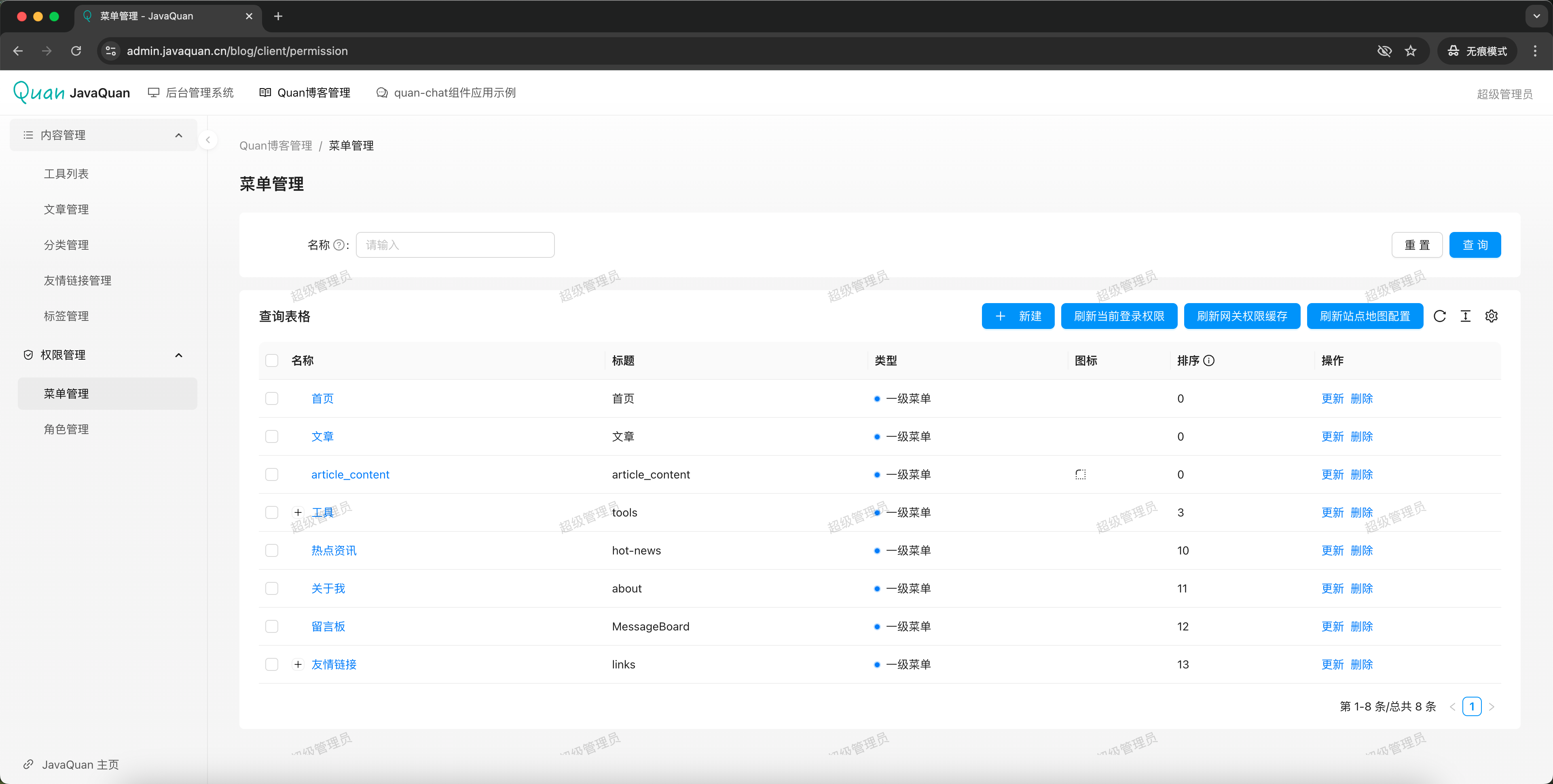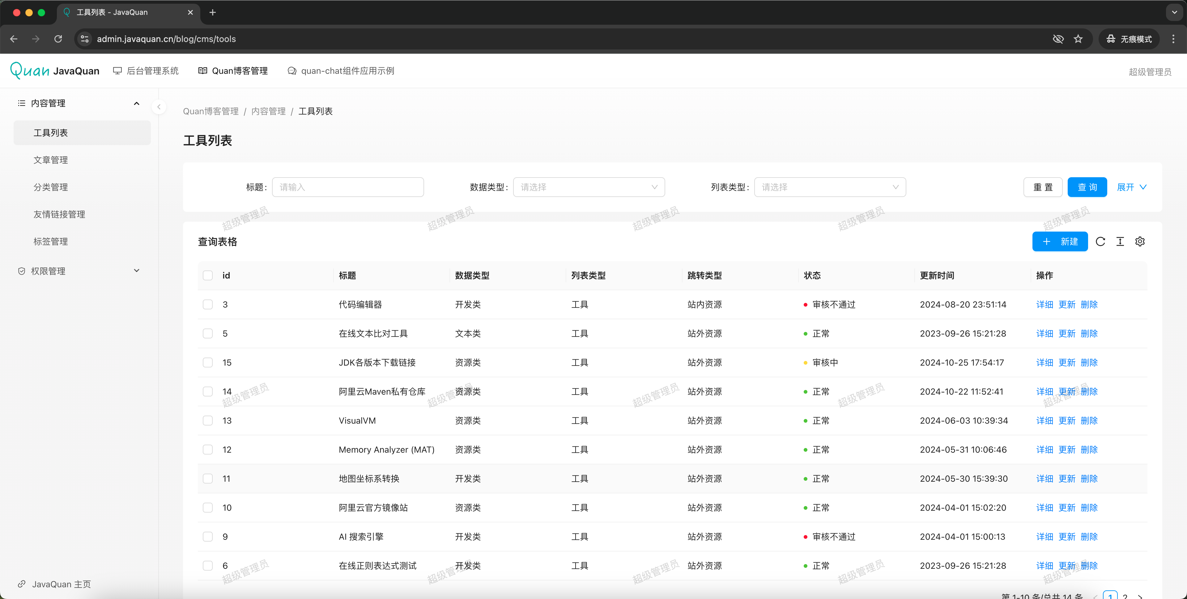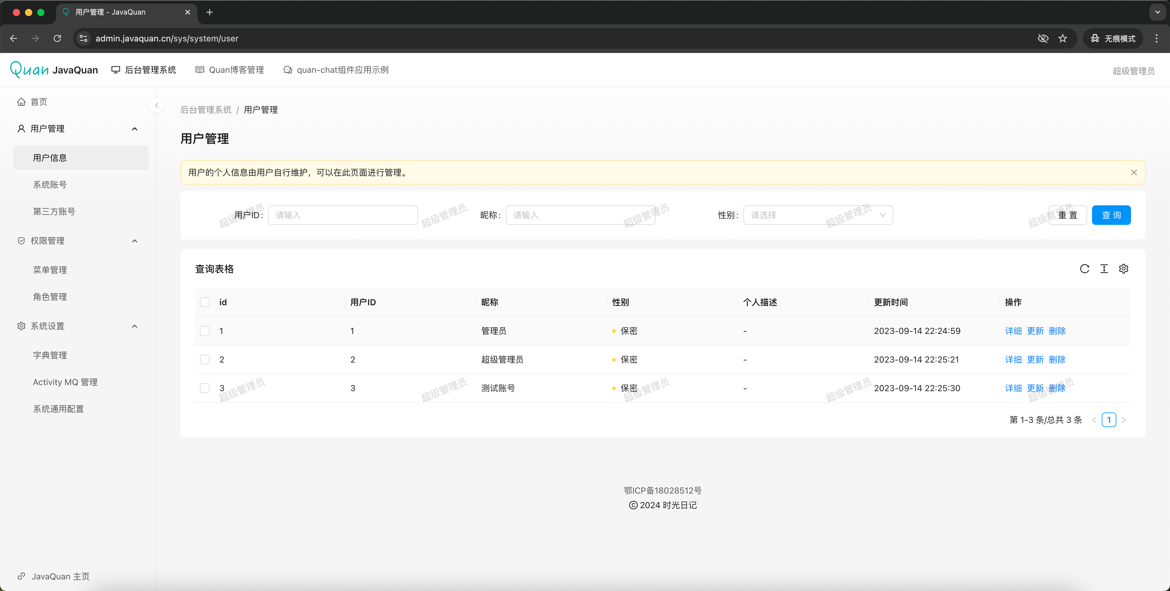 # quan **Repository Path**: pulb_study/quan ## Basic Information - **Project Name**: quan - **Description**: Quan 基于Spring Boot 2.7.x开发的后台管理系统。采用的架构是基于DDD领域驱动设计思想的BFF架构。目标是打造一个支持多端适配、分布式、高可用、多模块的系统。在未来可扩展成任意的企业中后台系统解决方案。 前端基于 Ant Design 5.0,为 Web 应用提供了丰富的基础 UI 组件, 助力设计开发者「更灵活」地搭建出「更美」的产品 ~ - **Primary Language**: Java - **License**: MIT - **Default Branch**: main - **Homepage**: https://javaquan.cn - **GVP Project**: No ## Statistics - **Stars**: 0 - **Forks**: 10 - **Created**: 2025-11-24 - **Last Updated**: 2025-11-24 ## Categories & Tags **Categories**: Uncategorized **Tags**: None ## README