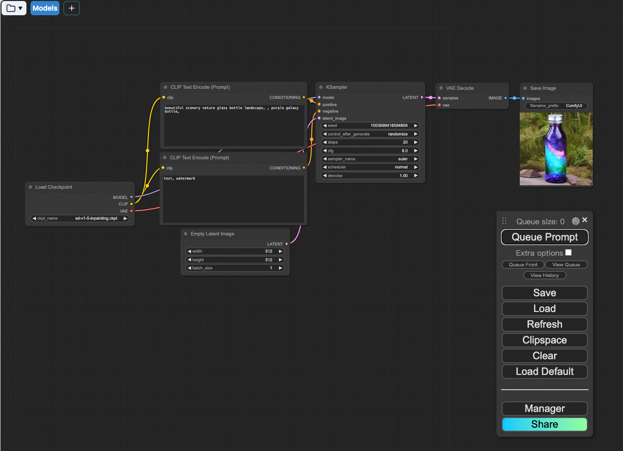 1. 打开 ComfyUI,点击“Queue Prompt”开始。