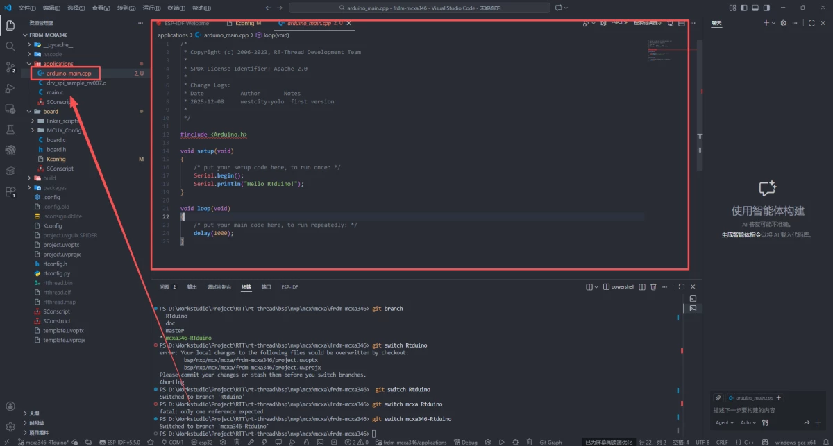 +首先添加一个arduino_main.cpp文件