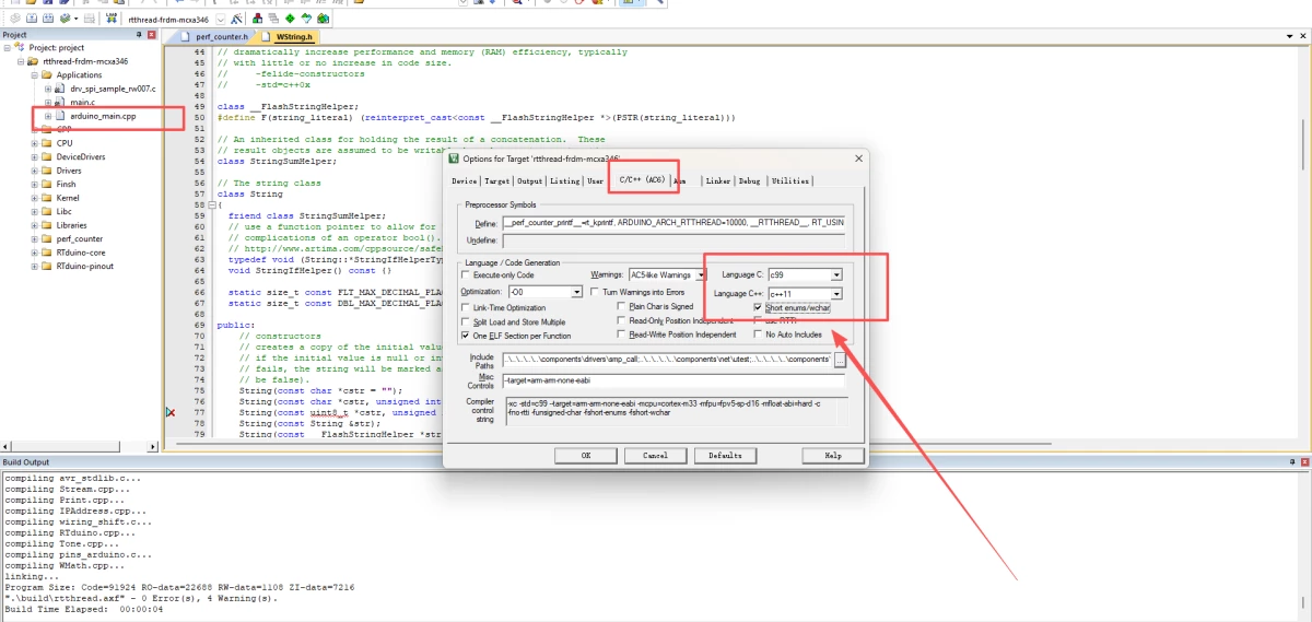 +scons —target=mdk5生成keil文件,然后打开keil增加C++11的支持