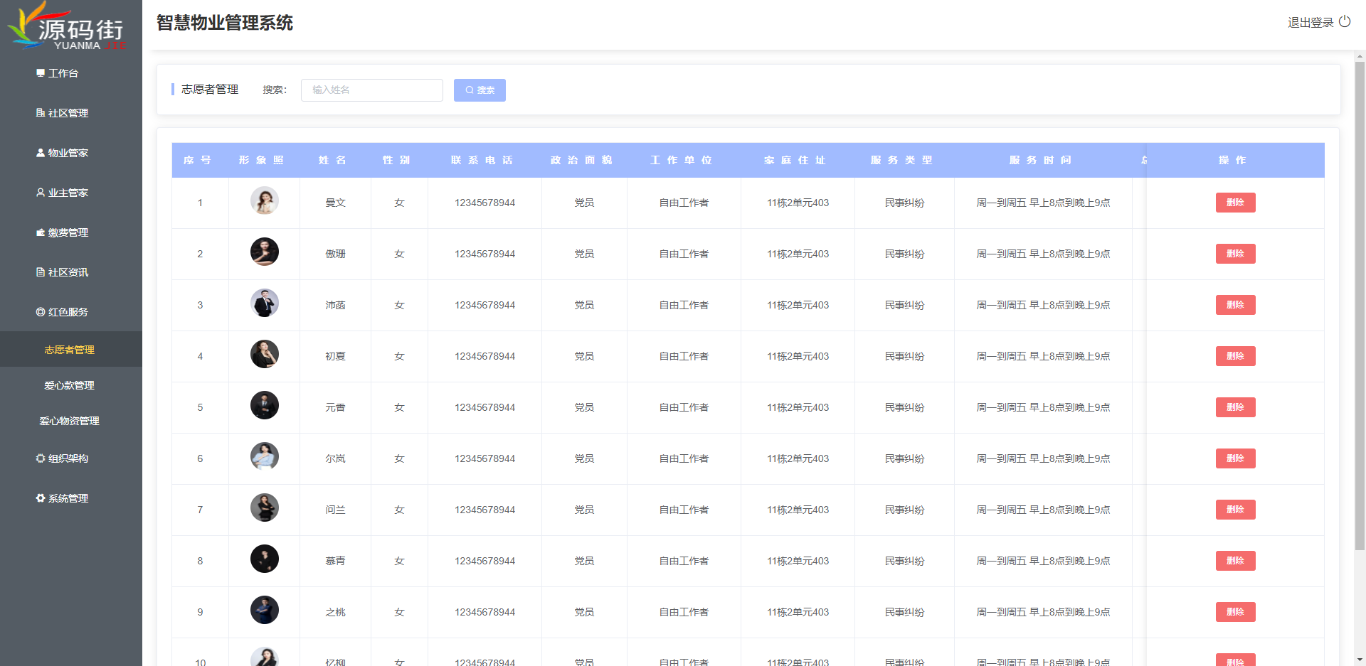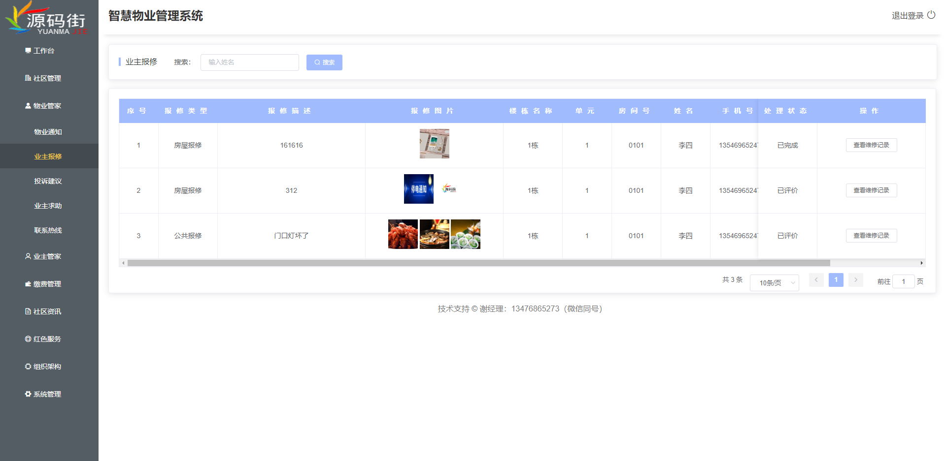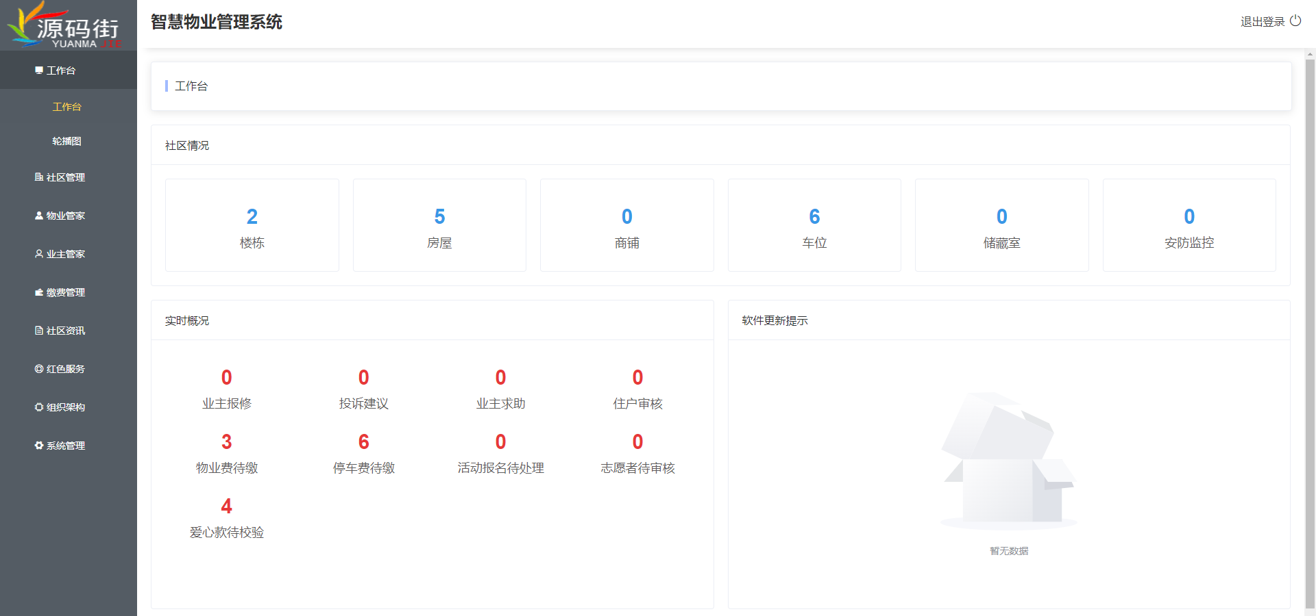 管理端演示地址:https://yuanmajie.top/wuye/#/login 账号 :admin 密码:123456
